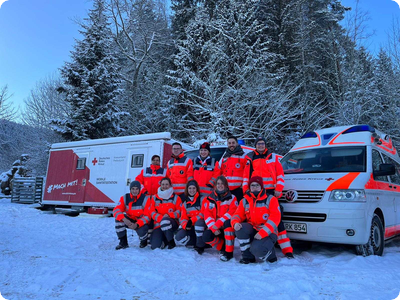 (Titisee-Neustadt) Pünktlich zum Beginn des ersten Schnees in der Region waren wieder zahlreiche Helferinnen und Helfer aus dem DRK-Ehrenamt samt Notarzt seit Donnerstag an der Hochfirst-Schanze präsent.