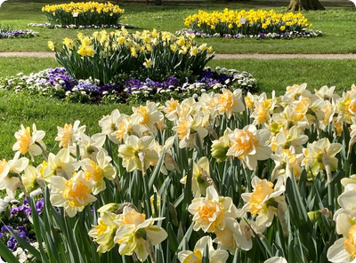 (Baden-Baden) Ihrem Höhepunkt steuert aktuell die Blüte der Narzissen im Dahliengarten an der Klosterwiese Baden-Baden zu.