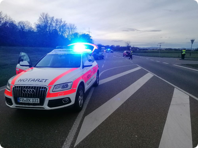 Unser Bild zeigt die Unfallstelle auf der B 31 bei Breisach. Bild: DRK Kreisverband Freiburg
