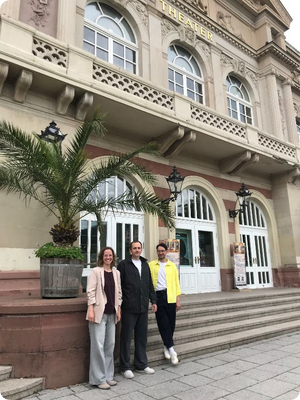 Auf dem Bild von links nach rechts zu sehen sind: Marie Leibing, Verwaltungsleiterin des Theater Baden-Baden, Simon Meienreis, designierter Intendant, Nick Hartnagel, Regisseur.