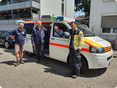 Unser Bild zeigt Einsatzkräfte des Kriseninterventionsteams am Sonntag vor der Abfahrt in Freiburg. Bild: DRK Freiburg