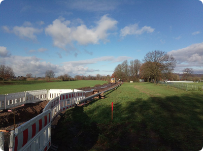 Seit September vergangenen Jahres laufen die Arbeiten für die Verlegung der Gasleitung bei Kollmarsreute, die das RP in Kooperation mit dem Netzbetreiber bnNetze durchführt. Diese wichtige überregionale Leitung, die einen Großteil der Stadt Waldkirch mit Gas versorgt, wird derzeit unterhalb des Kollmarsreuter Wehrs parallel zum Kollmarsreuter Baggersee auf einer Länge von rund 1,2 Kilometern verlegt. Die neue Trasse folgt dem Verlauf des neuen Hochwasserdammes. Die Arbeiten werden voraussichtlich bis Ende März abgeschlossen sein.