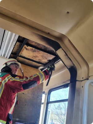 Beim Eintreffen der Feuerwehr an der Einsatzstelle hatten bereits alle Fahrgäste die Bahn gefahrlos verlassen. Im hinteren Dachbereich war ein Brandgeruch wahrnehmbar, und es waren Brandspuren an der Verkleidung sichtbar. Die Feuerwehr öffnete die Verkleidung und kontrollierte den darunterliegenden Bereich mit einer Wärmebildkamera. Es konnte jedoch kein Feuer festgestellt werden. Zur Sicherheit wurde der Brandschutz an der Einsatzstelle sichergestellt. Der hinzugezogene Rettungsdienst sichtete die Fahrgäste, es gab jedoch glücklicherweise keine Verletzten.