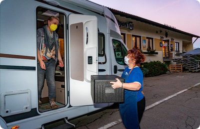 Im Wirtshaus Wildpark in Schwenningen gibt es jetzt ein Wohnmobil Dinner. Dieses wird immer von Donnerstag bis Sonntag angeboten. Nach telefonischer Anmeldung unter 07720.32571 können die kulinarischen Köstlichkeiten samt Getränke bestellt werden. Vor Ort wird das Gericht dann auf Tellern mit Besteck serviert. Natürlich frisch zubereitet und in der Warmhaltebox von Inhaberin Bianca Wälde. Derzeit ist allerdings nur Barzahlung möglich.