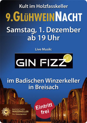 Live Musik mit GINFIZZ garniert das lebendige Geschehen. Die einen können sich dabei noch gut unterhalten, die anderen tanzen ausgelassen und fühlen sich einfach wohl. Eine spezielle Kellerführung zwischendrin ist ein nicht alltägliches Erlebnis und wird gerne angenommen. Von Häppchen über Gebäck und Wurstweckle bis Suppe reichen die zünftigen Leckereien, die in den gemütlichen Sitznischen zwischen den Holzfassreihen entspannt verzehrt werden können. Auch draußen gibt es bei Fackellicht Stehtische für jene, die die Kälte lieben.