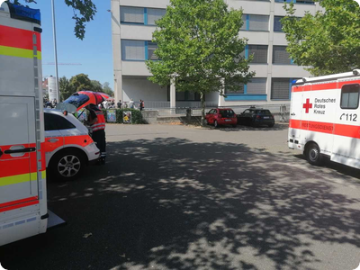 In das Einsatzgeschehen eingebunden waren zwei DRK-Rettungswagen, ein Notarzt, ein Leitender Notarzt und der Organisatorische Leiter Rettungsdienst des DRK.