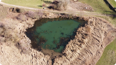 Luftaufnahme des Bleichweihers vor der Ausbaggerung