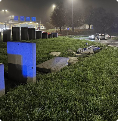 Am Fahrzeug entstand Totalschaden. Der Sachschaden am Kreisel und der Infrastruktur der Fahrbahn beträgt mehrere zehntausend Franken. Der Fahrer musste mit leichten bis mittelschweren Verletzungen durch den Rettungsdienst ins Spital gebracht werden. Der Euregiokreisel musste eineinhalb Stunden gesperrt werden.