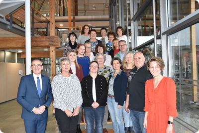 Unser Bild zeigt die anwesenden Mitarbeiterinnen und Mitarbeiter gemeinsam mit Landrat Sven Hinterseh und Monika Ziolek, Personalrat: