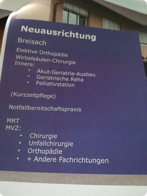 Ein Begleitausschuss des Landkreises Breisgau-Hochschwarzwald hat nun in den vergangenen Monaten verschiedene Modelle ausgearbeitet - in Abstimmung mit Helios dem Träger des Krankenhauses in Breisach und weiteren in Müllheim und Titisee-Neustadt. Der Landkreis hat zur Sicherung der Mitsprache noch rund 25 % Anteil an den Kliniken und kann damit Einfluss auf die medizinischen Einrichtungen nehmen. Allerdings sind in allen drei Kliniken die wirtschaftlichen Perspektiven nicht optimal durch die kleine Anzahl an Betten und den damit verbundenen medizinischen Leistungen vor Ort. Die noch neue Geschäftsführerin der drei Einrichtungen, Beatrice Palausch, ist seither damit beschäftigt, die Kliniken neu auszurichten. Schwierigster "Patient" dabei ist der Standort Breisach. Dort ist das Defizit in den vergangenen Jahren deutlich gestiegen und wird in diesem Jahr wohl erneut bei über 500.000 Euro liegen. Bei 123 Betten lag die Auslastung im vergangenen Jahr nur bei 65%. Diese Zahlen und der bisherige Zuschnitt der medizinischen Ausrichtung haben dafür gesorgt, dass die Klinik deutlich unattraktiver für Helios wurde.