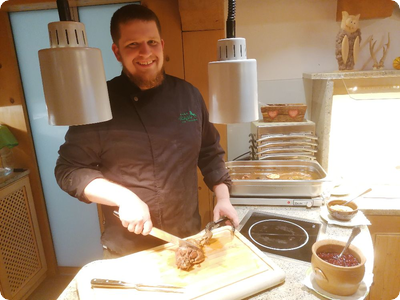 Unser Bild von Matthias Reinbold zeigt einen Blick auf Alexander Maier bei der Arbeit am Wild-Buffet.